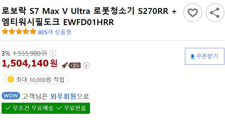1. 로보락 S7 Max V Ultra 로봇청소기