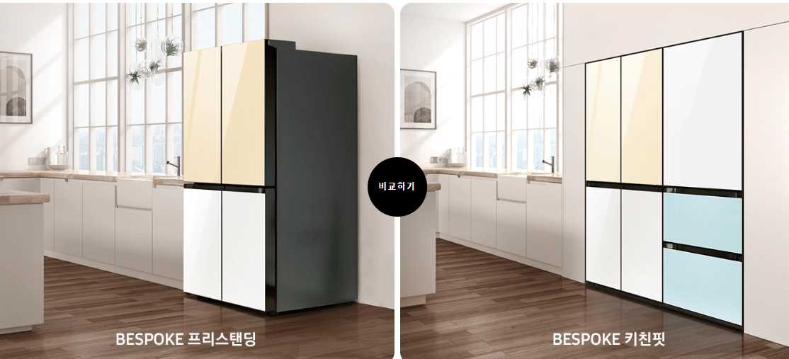 비스포크 냉장고의 가장 큰 장점은 냉장고가 가구 같다는 점과 나만의 맞춤형 조합으로 주방을 나답게 디자인 할 수 있다는데 에 있습니다.