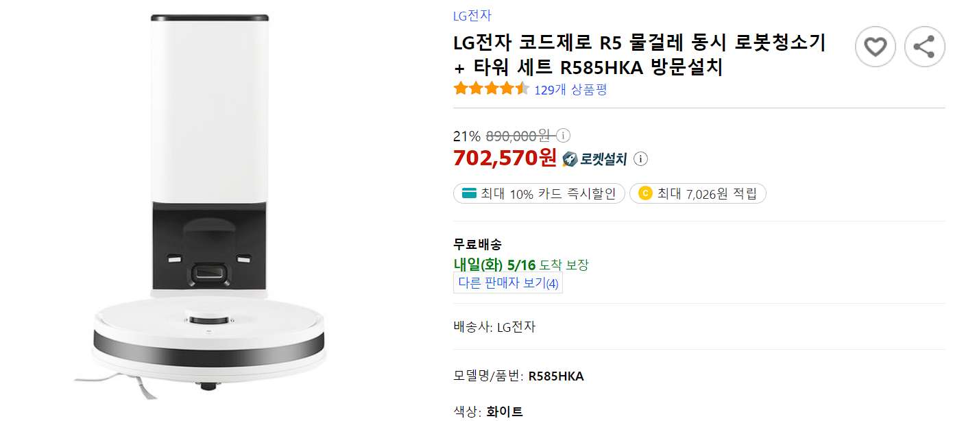 LG전자 코드제로 R5 물걸레 동시 로봇청소기 타워 세트